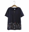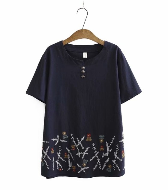 Plus Size White Red Women's Flower Embroidered Shirt Short Sleeve Summer Shirts Vintage Tops