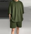 INCERUN Mens Shorty Pajamas Sets Nightwear Japanese Loose Fit Tops Shorts Sleepwear Suit (Korean Style)